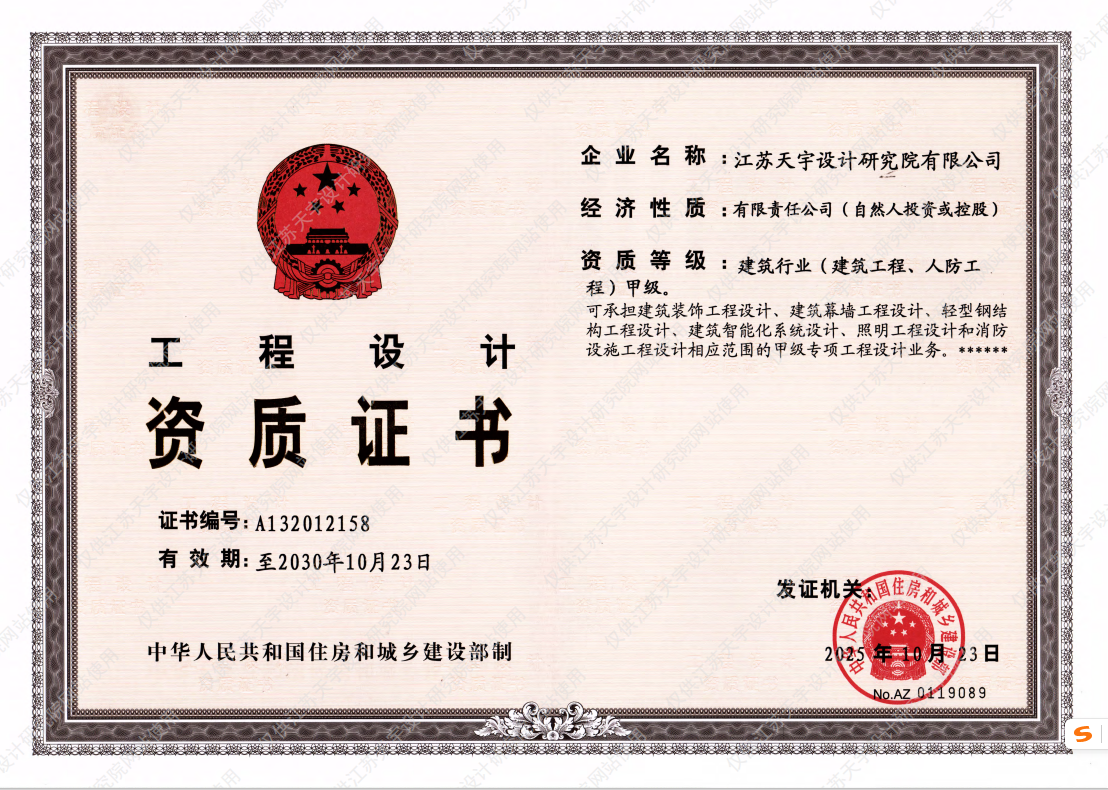 建筑行业(建筑工程、人防工程)甲级资质证书;